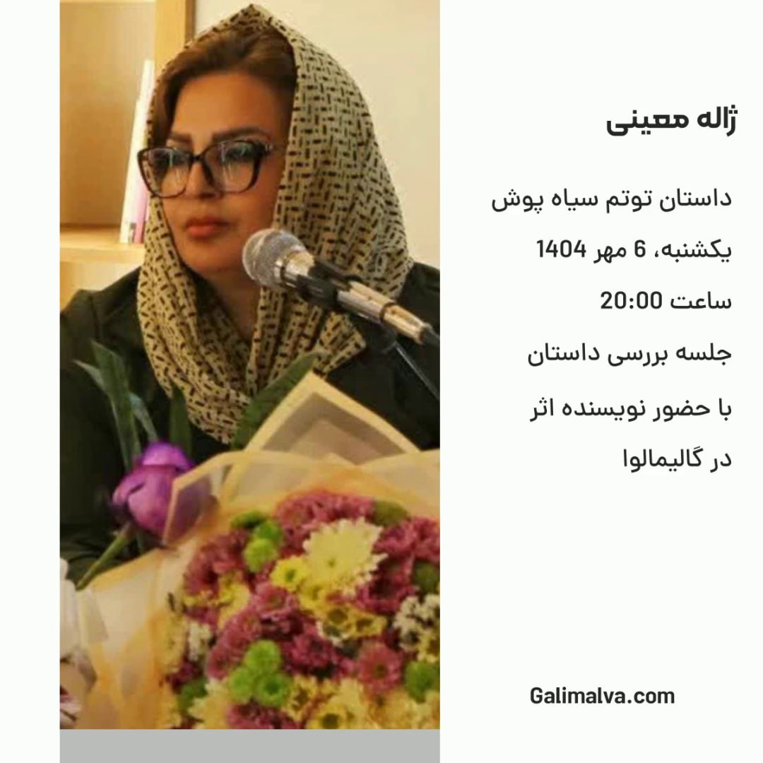 در این جلسه به نقد و بررسی داستان کوتاه (توتم سیاه‌پوش) اثر  سرکار خانم ژاله معینی نویسنده‌ی معاصر می‌پردازیم و درباره‌ی مفاهیم، سبک نوشتاری و‌نگاه نویسنده گفت وگو خواهیم کرد.